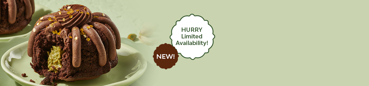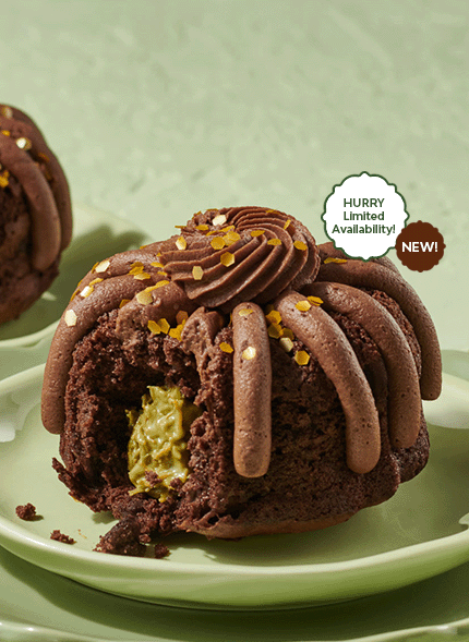 Bite into the internet sensation, Dubai Chocolate. Our Chocolate Chocolate Chip cake filled with pistachio cream and phyllo mixture, topped with our chocolate ganache cream cheese frosting and gold sprinkles. Only available 3/2 – 3/15, indulge today before it's gone!